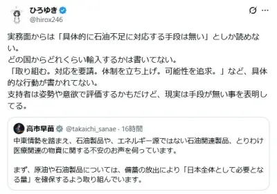 ひろゆき氏、高市首相が投稿の石油不足対策をバッサリ「現実は手段が無い事を表明してる」