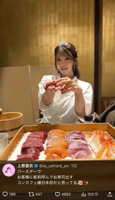 【悲報】元上原亜衣さん、さんざんチ◯ポ握った手で寿司を振る舞う🍣