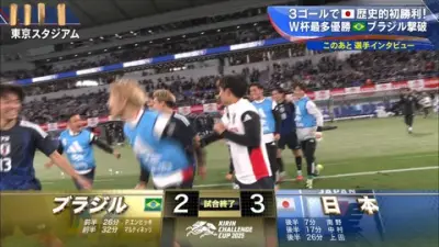冠スポンサーのキリンさん、サッカー日本代表が過去2分11敗のブラジルに歴史的初勝利でニッコニコになる
