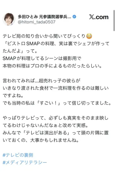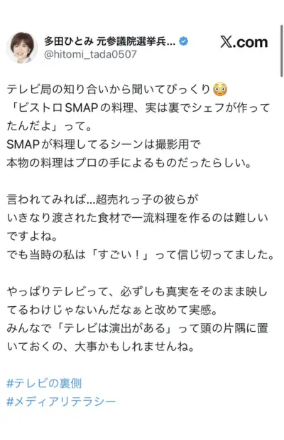 【大炎上】「ビストロSMAP、実は裏でプロが作ってた」発言の政治家、謝罪するもさらに火に油を注ぐ事態に
