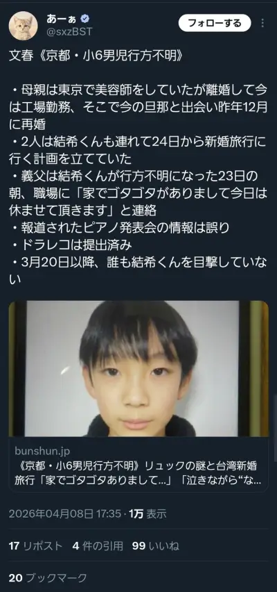 【画像】京都の行方不明事件、文春砲炸裂