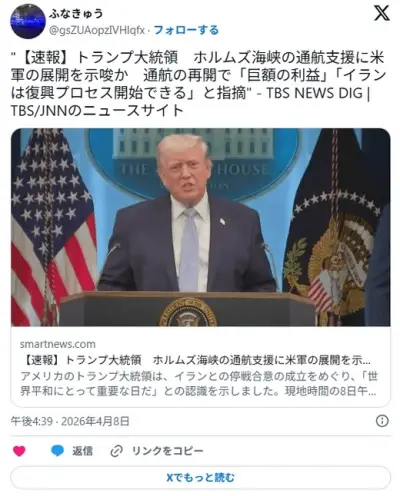 【速報】トランプ大統領、「様々な勢力から海峡を守れるのでは?」イランと共同事業で通航料を徴収する案を検討