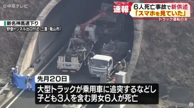 新名神6人死亡事故、トラック運転手の女「スマホ見ていた」