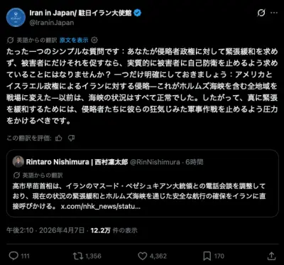 高市「イランの首脳と会談したい」駐日イラン大使館「は?お前は馬鹿か?」