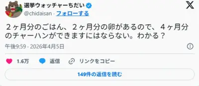 2月分のご飯と玉子があってもチャーハン 4月分にはならない 頭バスクリンさんの解説が秀逸