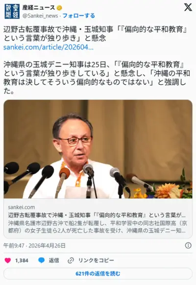 デニー知「『ヘイワ教育』を偏向と罵る声がネットに吹き荒れている、偏向ではなく今後も強化」