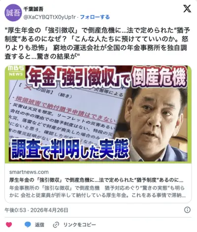 厚生年金の「強引徴収」で倒産危機。お前年金払えんのならな、会社差し押さえさせてもらうわ
