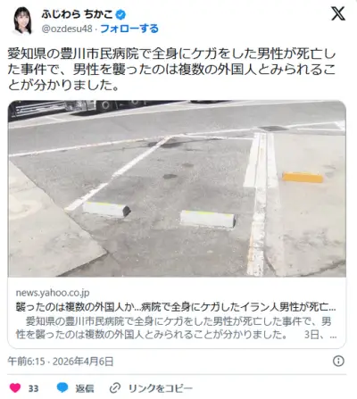 【愛知】襲ったのは複数の外国人か…豊川市民病院で全身にケガしたイラン人男性が死亡した事件 東名のPAで殴られたあと遺棄とみて捜査