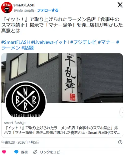 ラーメン名店「食事中のスマホ禁止」掲示で「マナー論争」勃発…店側が明かした真意とは