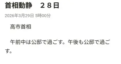 【悲報】高市早苗「働いて働いて働いて働いて働いて参ります」→首相動静「終日公邸で過ごす」