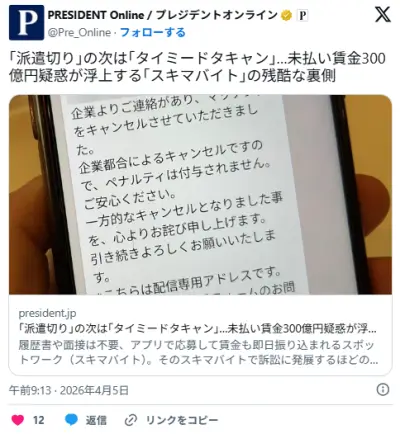 【タイミードタキャン】未払い賃金300億円疑惑が浮上する「スキマバイト」の残酷な裏側