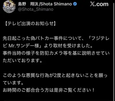 【画像】偽パトカーで自転車を取り締まってた正義マンさん、Mr.サンデーで全国に晒されてしまう