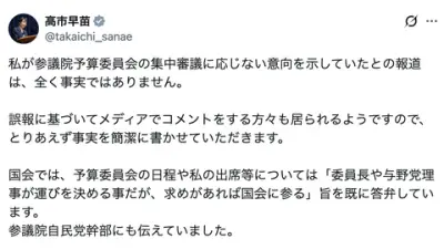 【悲報】高市早苗、オールドメディア報道にブチギレ「私が予算委員会の集中審議に応じないというのはデマ。呼ばれたらちゃんと出てる」