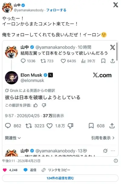 イーロン・マスク「パヨクどもは日本を破壊しようとしている」