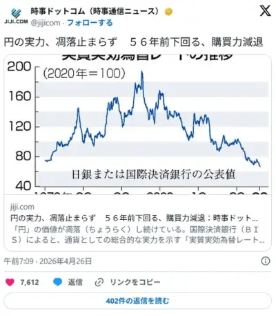 【円の実力】凋落止まらず 56年前下回る、購買力減退