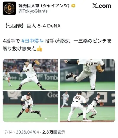 巨人公式X、筒香が死球を受けたイニングに👍の絵文字を使って炎上