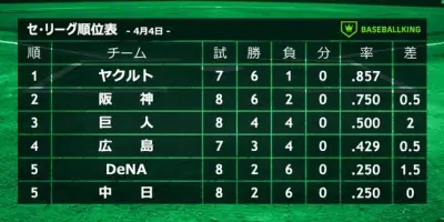 【悲報】セリーグ、早くもAクラスが確定してしまうwwwwwwwwwwwwwww