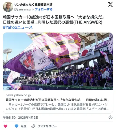 韓国U-18にも選ばれた在日朝鮮人尹星俊が帰化申請 日本代表入りへ