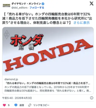 ホンダ社員「売れる車がない…」