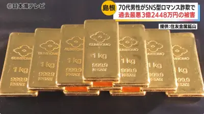 ロマンス詐欺で70代男性が3億2448万円の被害… 金の延べ棒21本と金貨16枚と現金2300万円をだまし取られる