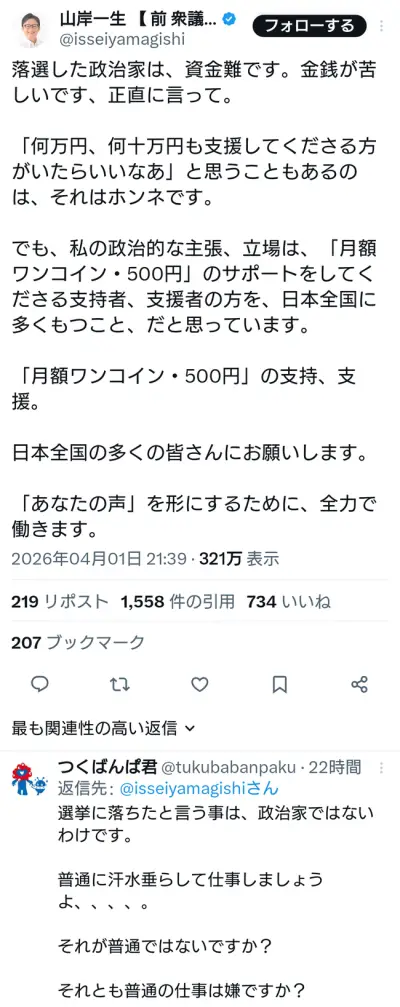 【悲報】チュドカク議員、咽び泣く「お金がありません😭助けてください😭」