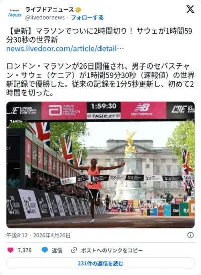 【衝撃】ロンドンマラソン、ついに人類初の2時間切りに2位もサブ2で女子も世界新