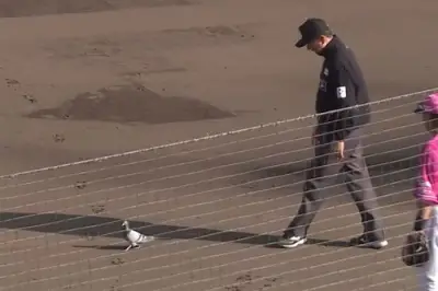 【悲報】ハトさん、楽天-西武戦に乱入し一塁手にタイムを要求させてしまう