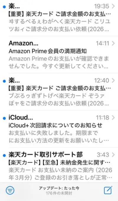 【悲報】楽天カードとiCloudの詐欺メールがひっきりなしに来るんやが