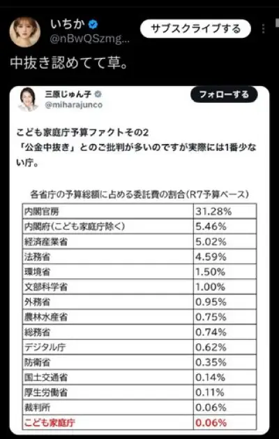 【悲報】こども庁公式「中抜きが少ない庁です」← ツイ民「中抜きしてるのは認めるの!?」