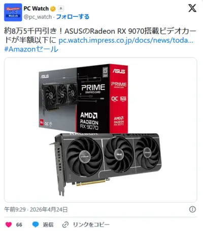 Radeon RX9070 16GB(先週まで16万円前後で推移)、全国各地で一斉に8万円で投げ売り開始