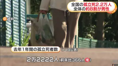 【悲報】全国の孤立死2.2万人、そのうち約8割が男性