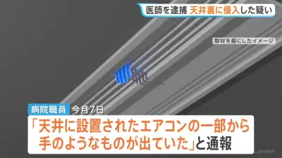 病院当直室の天井裏に侵入か…勤務の医師逮捕 「エアコンの裏から手のようなもの…」と通報