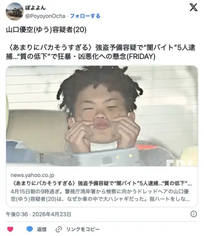 闇バイトで捕まった20歳の顔、ヤバすぎる