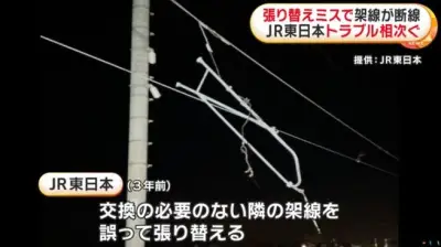 JR東日本さん、架線摩耗を検知するも誤ってその隣の架線を交換 → 3年後に元の架線が切れて17時間運休
