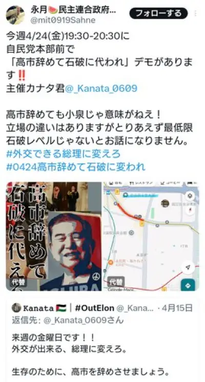 【朗報】「高市辞めて石破に代われ」デモが開催決定