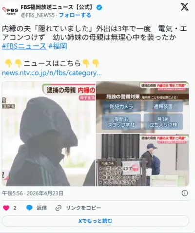 【福岡】内縁の夫「隠れていました」母子生活支援施設 外出は3年で一度 電気・エアコンつけず トイレの水も流さず3年間潜伏