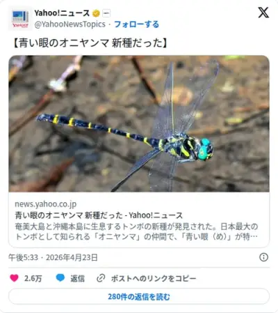【朗報】青い眼のオニヤンマさん、実はずっと新種だったことが判明してしまう