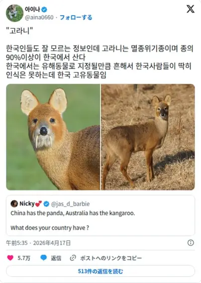 「キバノロ」というマイナー動物、突如ネットで広く認知される