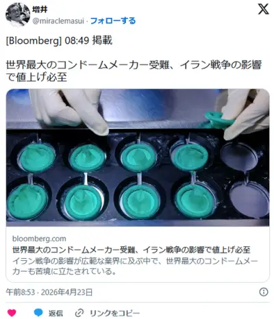 【医療製品】世界最大のコンドームメーカー受難、イラン戦争の影響で値上げ必至