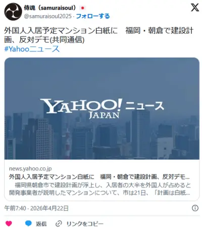 【福岡】外国人入居予定マンション白紙に 朝倉市で建設計画、反対デモ