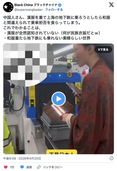 中国人さん、漢服を着て上海の地下鉄に乗ろうとしたら和服と間違えられて乗車拒否を食らう