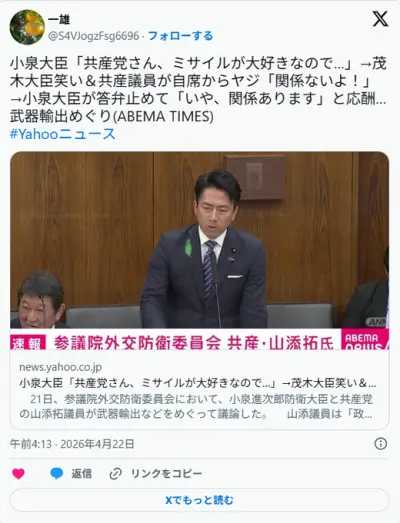 小泉大臣「共産党さん、ミサイルが大好きなので…」 →会場の笑いを取る