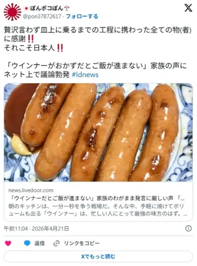 【料理】「ウインナーだとご飯が進まない」家族のわがまま発言に厳しい声 「嫌なら自分で作れ」「贅沢な悩み」