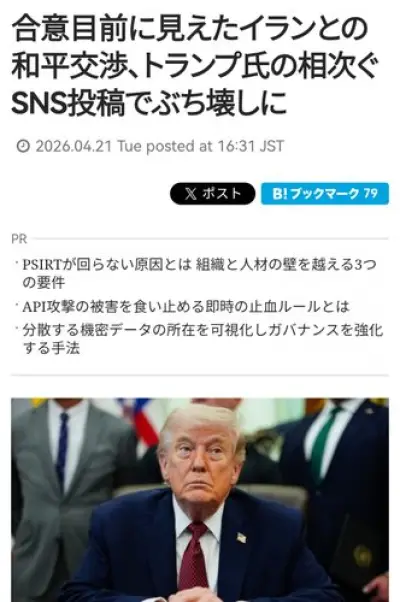 【悲報】イランとの交渉、トランプがSNSで暴れまくるせいで破綻しそう