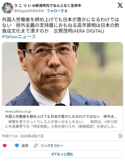 外国人労働者を締め上げても日本が豊かになるわけではない 排外主義の支持層に阿る高市首相は日本の飲食店文化潰すのか 古賀茂明氏