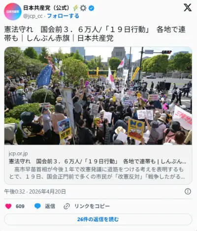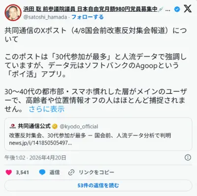 共同通信「改憲反対集会、30代参加が最多」 →デマの疑い