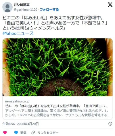 【👙】アンダーヘアは「ビキニからあえて出す」のが新常識? 1400万再生で話題のトレンド「フルブッシュ」とは