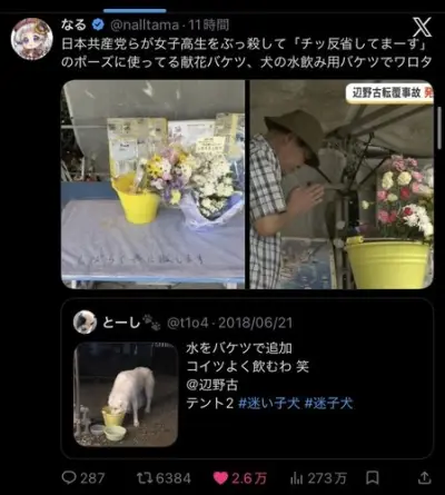 【悲報】辺野古で亡くなった女子生徒への献花、「例のバケツ」で物議を醸してしまう