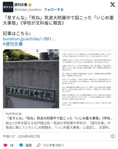 【名門国立校】「息すんな」「死ね」筑波大附属中で起こった「いじめ重大事態」 学校が文科省に報告