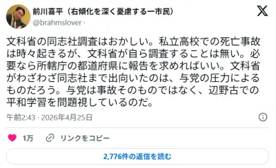 【速報】元文部科学事務次官、辺野古事故で文科省の調査に疑問「私立高校での死亡事故は時々起きるが、文科省が自ら調査することは無い」